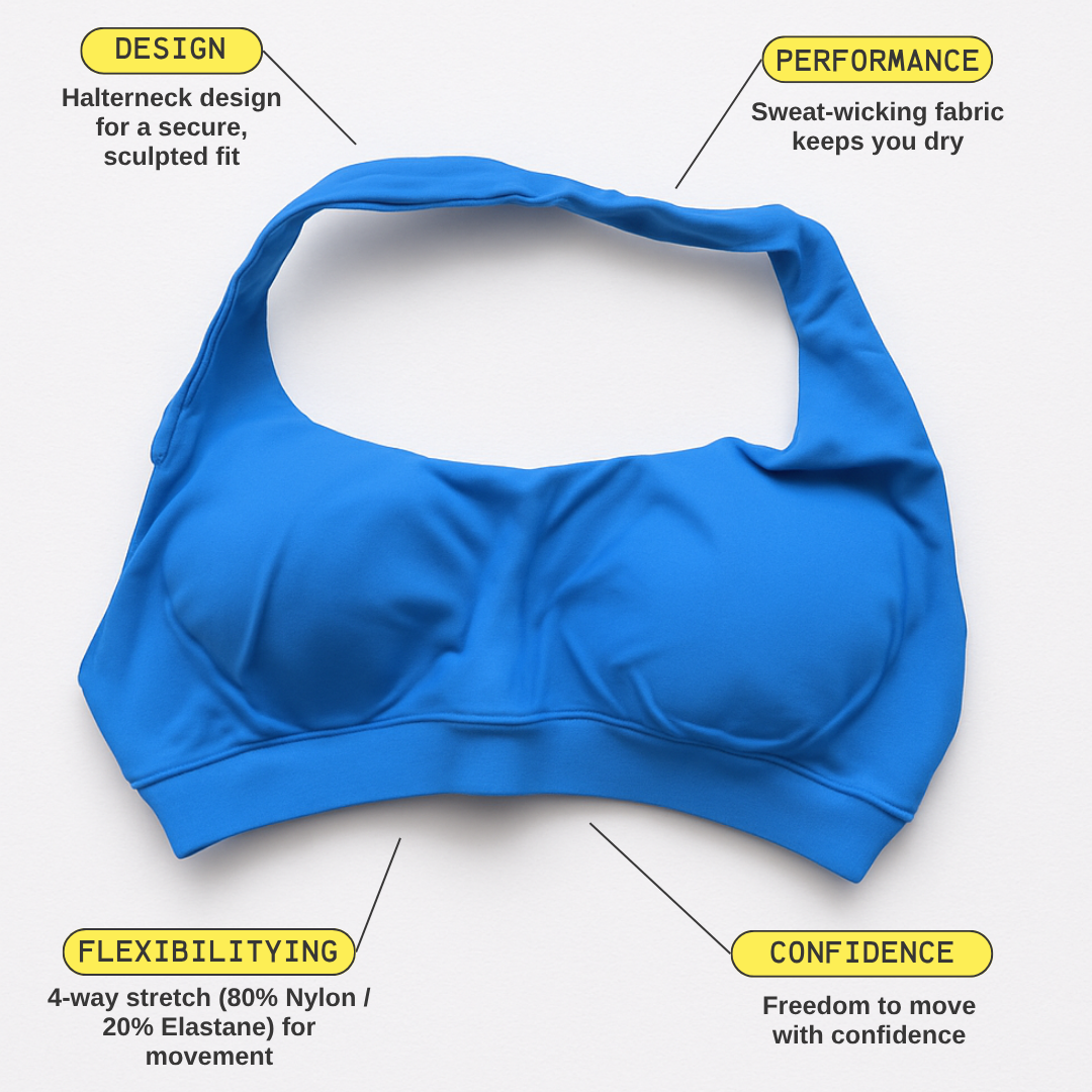 Designed for women who train with intent — this bra keeps up when the reps get real. The Women’s Halterneck Sports Bra blends a sculpted halter neckline with an open-back cut for total freedom of movement. It’s sleek, supportive, and made to move — whether you’re lifting heavy, striking pads, or grinding through conditioning.